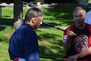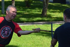 Frank Jähne (4. Antas Modern-Arnis, 4. Antas Kombatan-Arnis) ist unser Spezialist für die philippinischen Waffenkünste. Er bildet sich ständig weiter und organisiert immer wieder Sonder Einheiten in diesem System. Dabei wird er von Meister Dieter Preuss (7. Antas Modern-Arnis, 7.Antas Kombatan-Arnis) unterstützt. Die Lehrgänge sind Verbandsoffen und können von jedem Interessenten besucht werden.