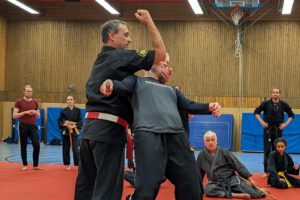 Am Wochenende 17.11. bis 19.11.2023 stand mal wieder ein internationales Treffen auf dem Programm. Emely, Leni, Nadine, Annette, Verena, Marc, Joachim und Volker machten sich auf den Weg nach Dortmund, um dort zum einen Freunde aus Deutschland, Dänemark, Brasilien und den USA zu treffen und zum anderen, das Wissen über Kampfkunst zu bereichern.