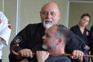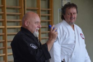 Hans-Joachim Schaffrinna (5.Dan Bujukai) und Jürgen Kessler (3.Dan Bujukai) haben sich diesem Thema angenommen und organisieren gemeinsam diese zusätzlichen Einheiten, die mehr Verständnis über Gegenstände als Waffe schaffen sollen. Gleichzeitig liegt die Kampfkunst im Fokus, es wird wie immer Koordination, Körperhaltung, Positionierung, Winkel … geübt, das zusätzlich für mehr Körpergefühl sorgt.